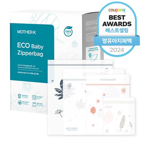 마더케이 에코 아기 지퍼백 4종 세트 S 15매입 + M 15매입 + L 15매입 + XL 15매입, 1세트
